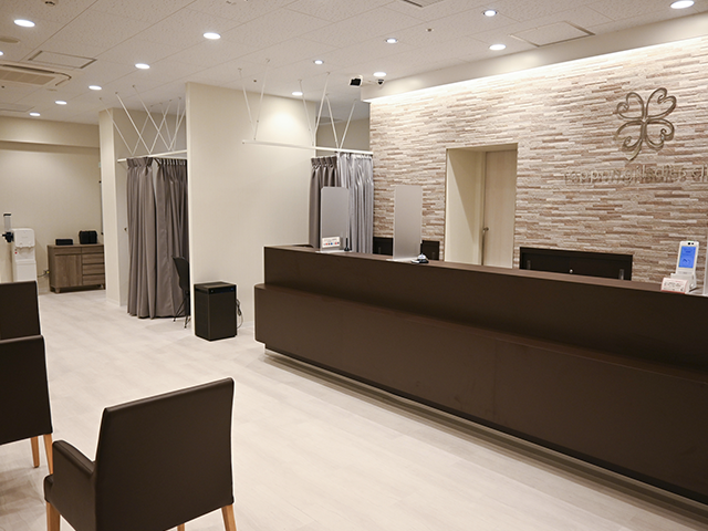 受付・会計と対応により箇所がわかれています。プライバシーに配慮し1カウンターごとに広めに距離を取っております。