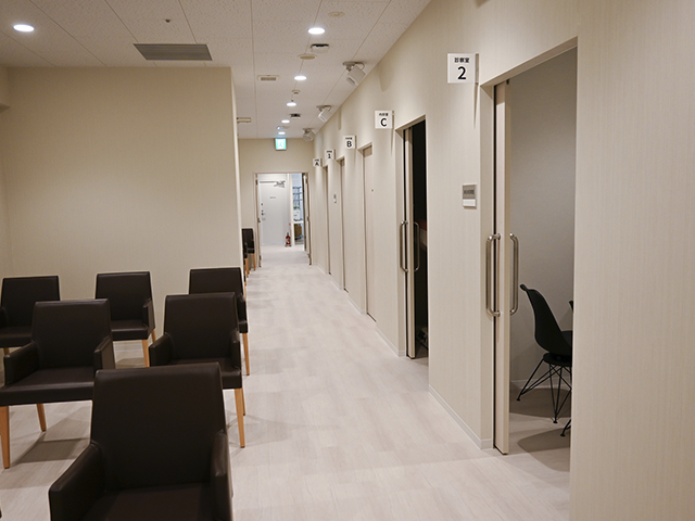 診察やリカバリー、子宮鏡室への案内を待つスペースです。