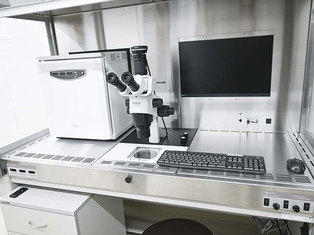 採卵や移植用のクリーベンチです。インキュベーターが内蔵されて、胚(受精卵)や卵子のストレスを軽減します。