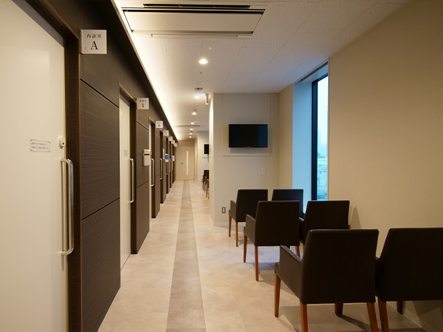 診察や案内を待つスペースです。内容に応じて各診察室へご案内します。