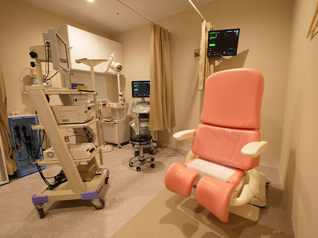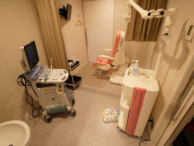 室内の明るさの調整やカーテンを設置しております。また、患者様自身のエコー画像が見られるようにモニターの設置をしております。
